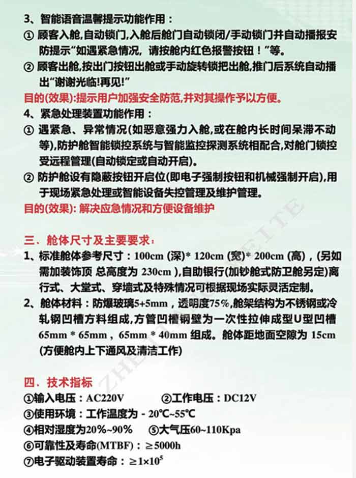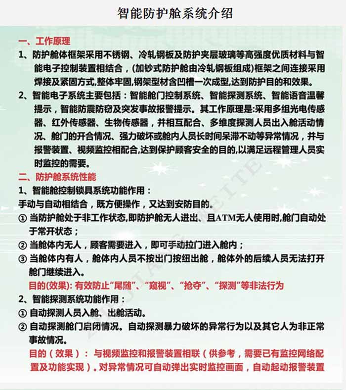 ATM机  智能防护舱产品根据文件要求生产规范如下(参考图)